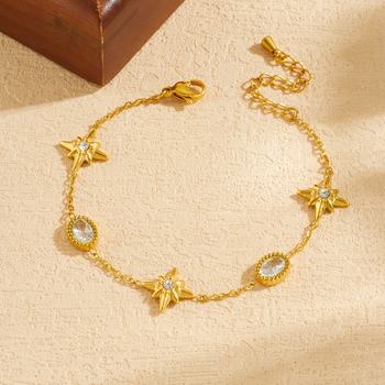 Golden Star Zircon Charm Bracelet for Women – Elegant Stainless Steel Jewelry