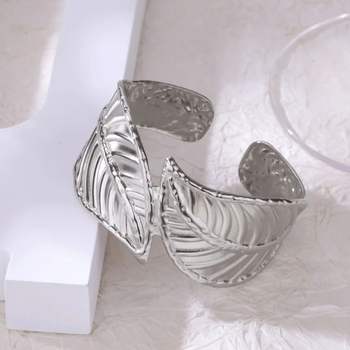 Hollow Leaf Stainless Steel Cuff Bracelet – Gold & Silver Statement Bangle