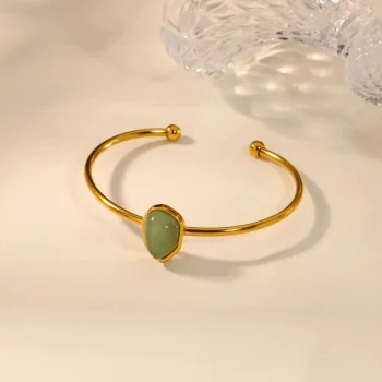 Natural Opal Cuff Bracelet for Women – Minimalist Open Bangle