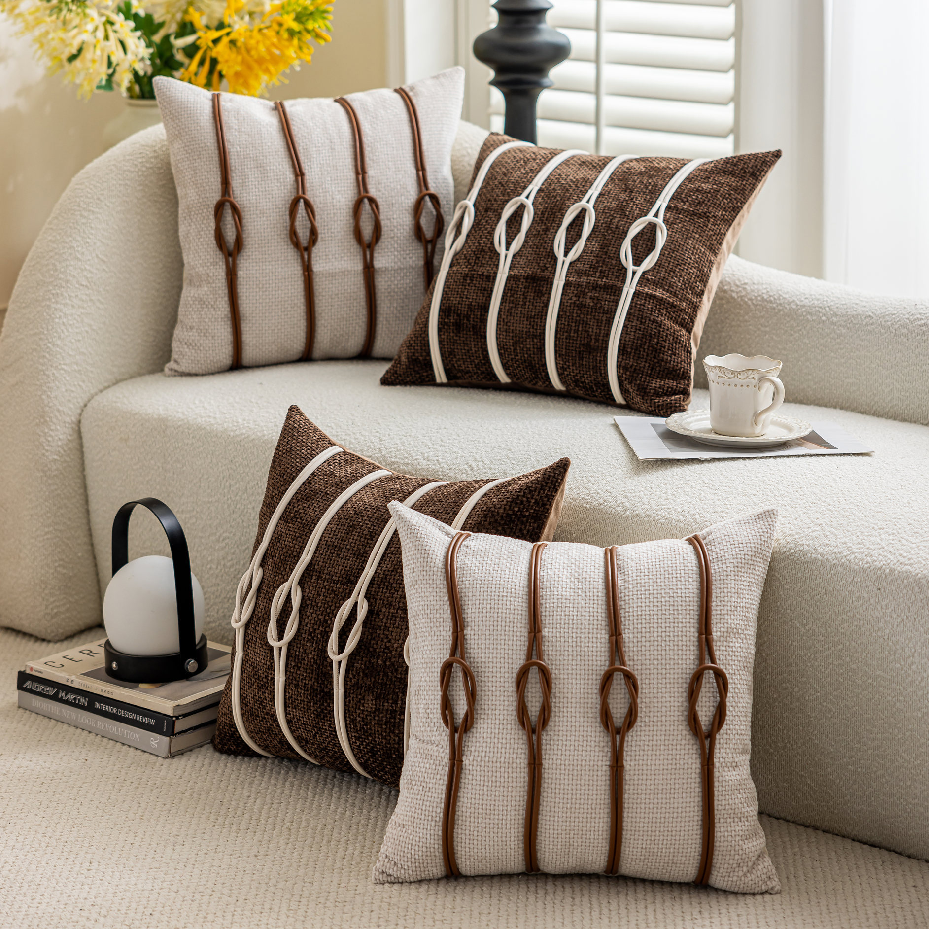 Brown Maillard Striped Chenille Cushion Cover for Sofa & Home Decor