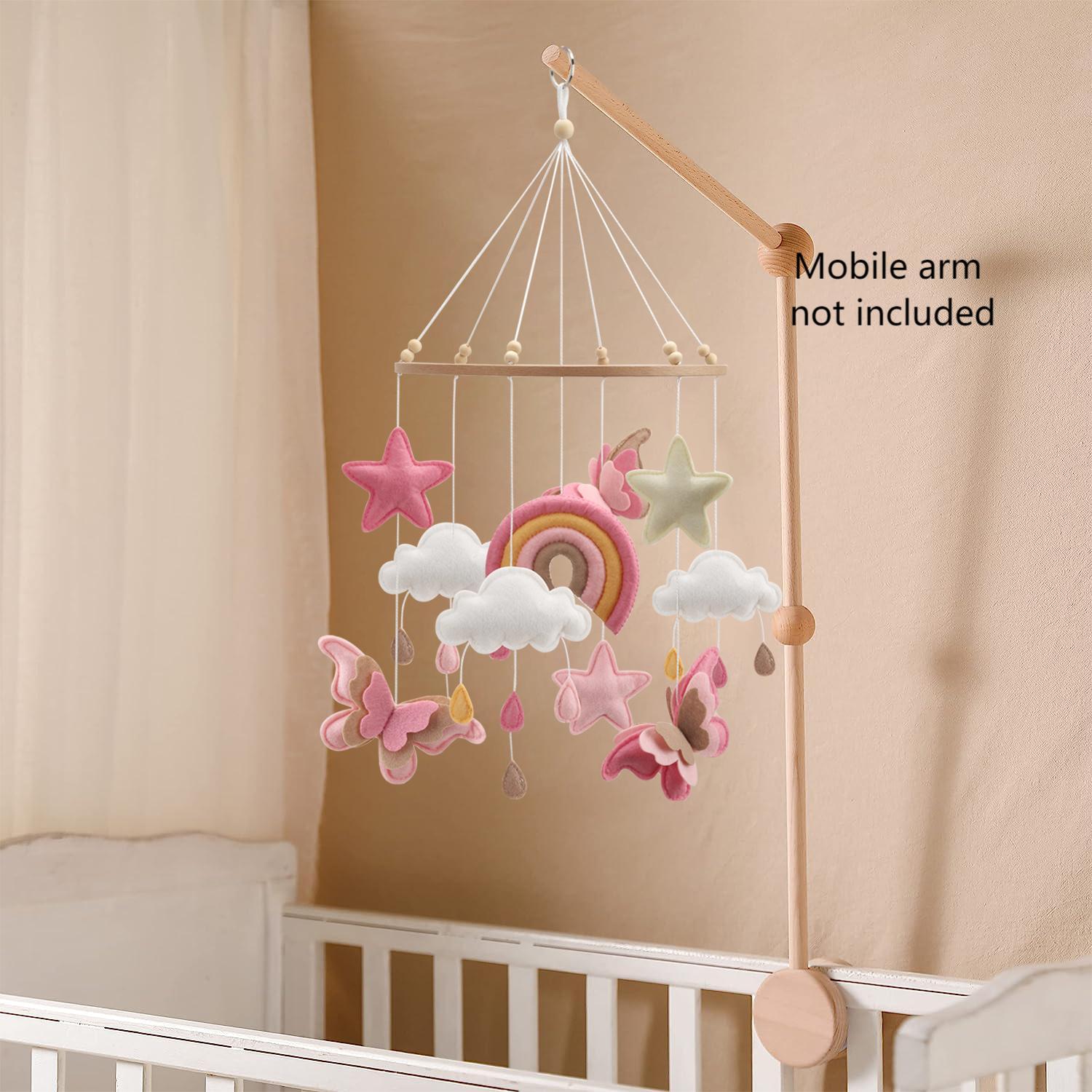 Bring softness, color, and calm into your baby girl’s space with this beautifully designed butterfly crib mobile. Delicate rainbow butterflies float gently above the crib, creating a peaceful and dreamy atmosphere that instantly warms the nursery. Designed to soothe and delight, this mobile adds a charming decorative accent while supporting your baby’s early sensory development.