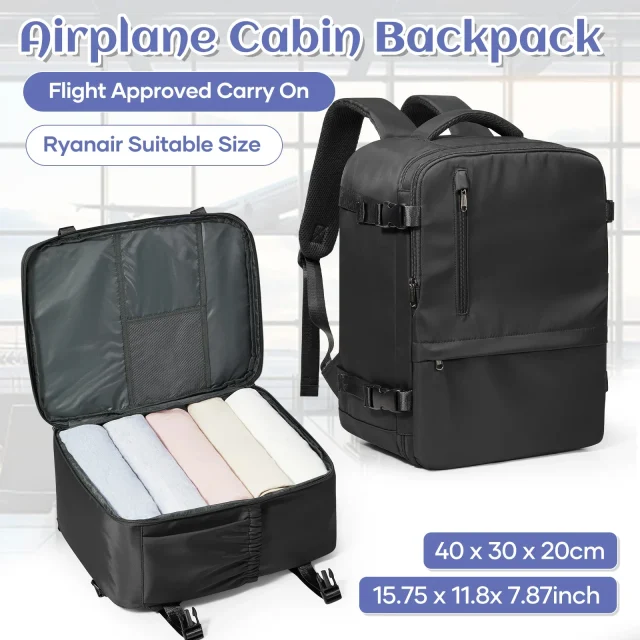 This compact yet spacious cabin backpack is designed for modern travelers who want convenience, comfort, and style in one reliable bag. Sized to fit under the seat on most budget airlines, including Ryanair, it helps you avoid extra baggage fees while keeping your essentials close at hand. Whether you’re heading on a business trip, a weekend getaway, or a daily commute, this backpack is the smart choice for stress-free travel.