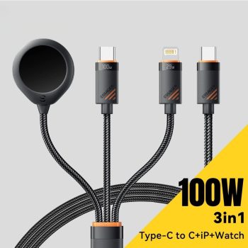 3-in-1 100W Fast Charging Cable for iPhone, USB-C & Watch