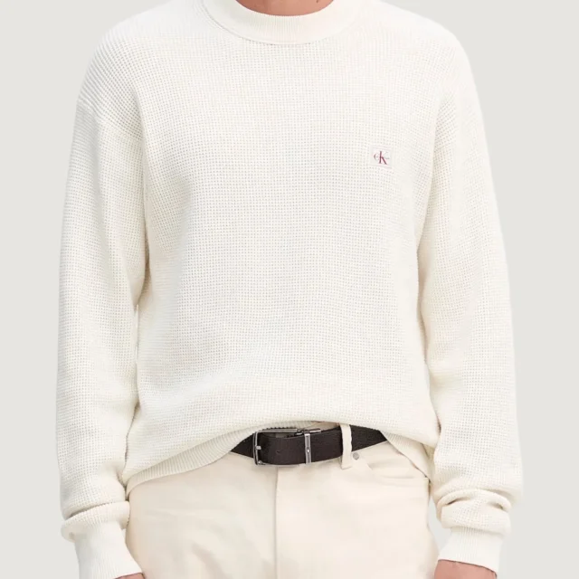 With its classic round neck and long sleeves, this knitwear delivers a clean, modern look that pairs perfectly with jeans or chinos. The neutral beige color makes it versatile enough to wear for both casual and semi-formal occasions, offering endless styling possibilities. Its simple yet sophisticated design embodies Calvin Klein’s signature style, ensuring you stand out wherever you go.