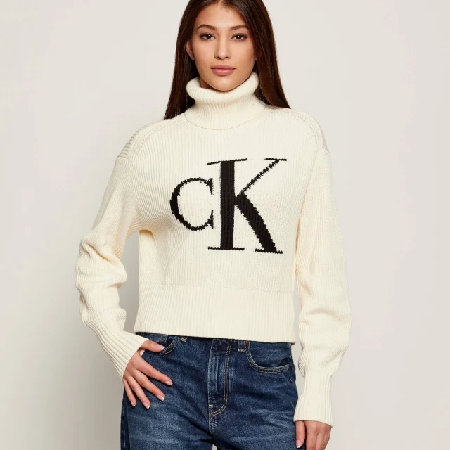 The Calvin Klein Jeans Women’s White Printed Cotton Turtleneck Knitwear is more than just a winter essential. Here’s why you’ll reach for it all season long: