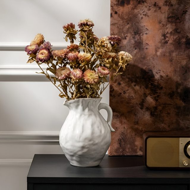 Handmade Wabi-Sabi Ceramic Vase Rustic White Jug for Dried & Fresh Flowers