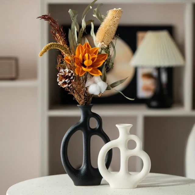 This Abstract Hollow Ceramic Vase is more than just functional; it’s a captivating work of art that enhances any space. The modern, doughnut-like shape is both minimalist and bold, making it an ideal addition to your living room, office, or entryway. Its hollow design and clean lines provide a striking contrast to the softness of dried florals, while the matte finish adds a touch of luxury to your decor.