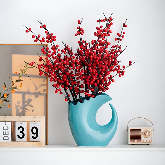 This vase is not only about style, but also about quality. Made from high-quality ceramic and porcelain, it is durable and built to last. The smooth finish and gentle hues of red and blue add a timeless appeal, effortlessly blending with both modern and traditional settings. It’s the perfect accessory for those looking to add a pop of color and elegance to their surroundings.