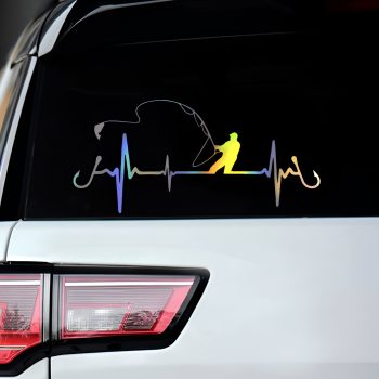 Fisherman Heartbeat Fishing Vinyl Decal Sticker for Car, Truck & Laptop – 8″x3.6″