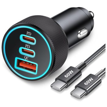 67W 3-Port USB C Car Charger Adapter – Dual USB-C & USB-A Fast Charging