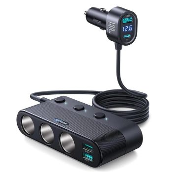24W Dual USB Fast Car Charger with LED Display and 5-Port Expansion