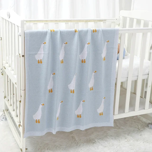 Cartoon Goose Knitted Baby Blanket – Soft Cotton Swaddle Wrap for Newborns