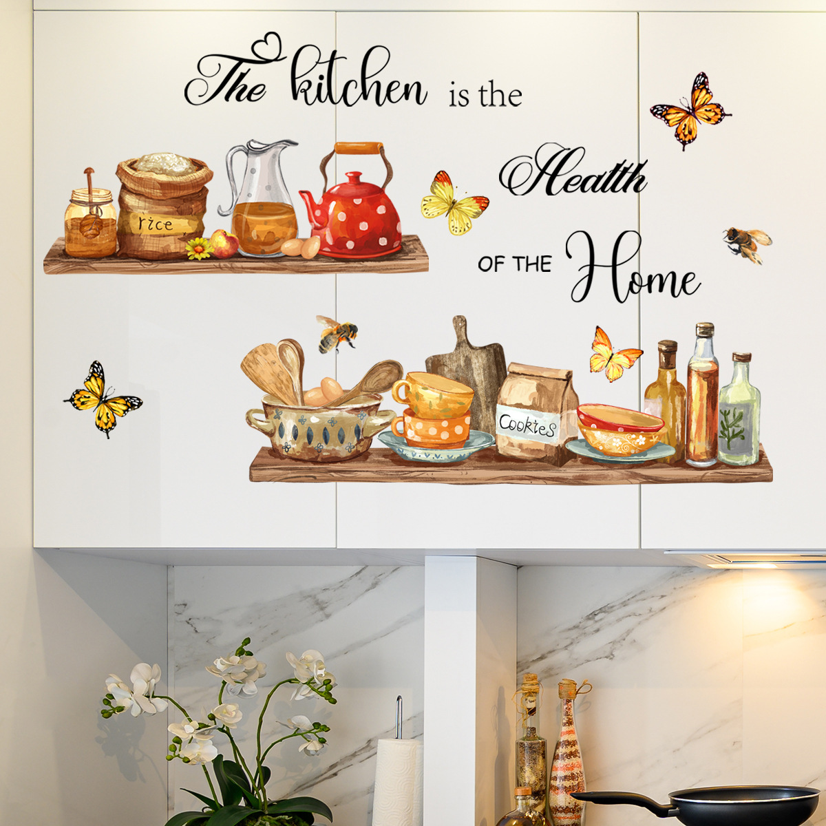 This wall sticker isn’t just a decoration—it’s a conversation starter! It turns plain walls into a lively scene that complements your cooking and dining experiences. Ideal for kitchens, dining areas, cafés, and restaurants, it’s best used as a cheerful accent behind countertops, sinks, or breakfast nooks.