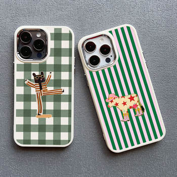 Charming Green & White Plaid Animal Silicone iPhone Case – Shockproof & Cute