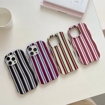 Luxury Striped Shockproof Slim Phone Case with Wave Edges for iPhone