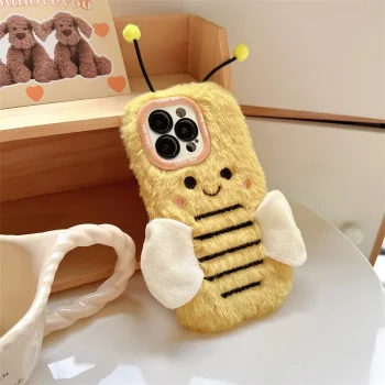 Fluffy Plush Bee iPhone Case with Lens Bracket – Shockproof Cover