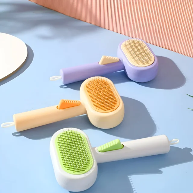 Unlike ordinary combs, this tool combines efficiency and ease of use with its dual-sided design and one-click cleaning feature. No more pulling fur out of the brush with your fingers—just press the button and the hair slides off instantly. Its gentle bristles massage your cat’s skin, improving circulation and promoting a shiny, healthier coat. Best of all, it’s safe for all breeds and fur types, so it can grow with your pet’s changing needs.