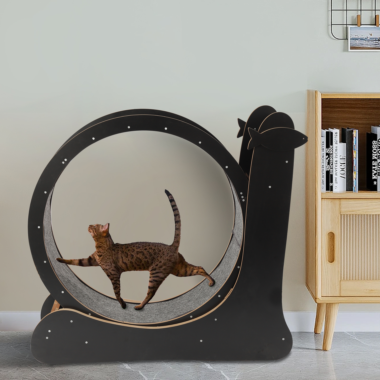 The sleek black design of this cat treadmill is not just functional but stylish as well, blending seamlessly with your home decor. The thoughtfully designed features ensure both comfort and safety for your cat, making it a must-have for any pet owner who wants the best for their furry companion.