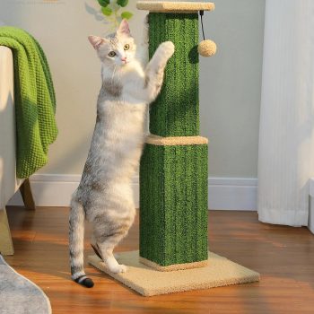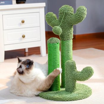 Cactus Cat Scratching Post with 3 Natural Sisal Poles and Interactive Ball
