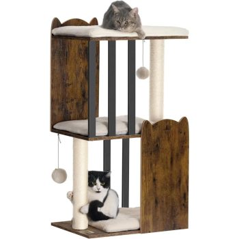 3-Tier Modern Cat Tree Tower with XL Platforms & Full Sisal Scratch Posts