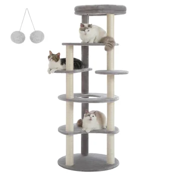 61″ Multi-Level Cat Tree with Scratching Posts & Hanging Toy
