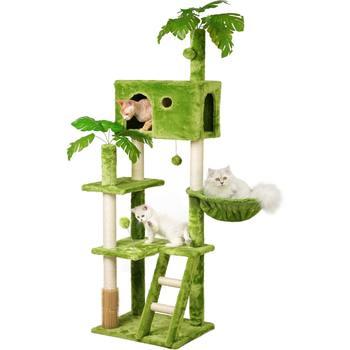 65″ Large Cat Tree with Leaves and Hammock for Indoor Cats