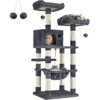 56.3-Inch Cat Tree with Hammock and Plush Perch – Ideal Cat Condo for Indoor Cats