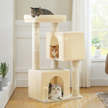 44” Cat Tree Tower with Spacious 2-Door Condo & Sisal Scratching Posts