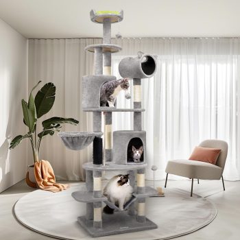 88.6″ Extra-Tall Multi-Level Cat Tower with Plush Condos & Scratching Posts