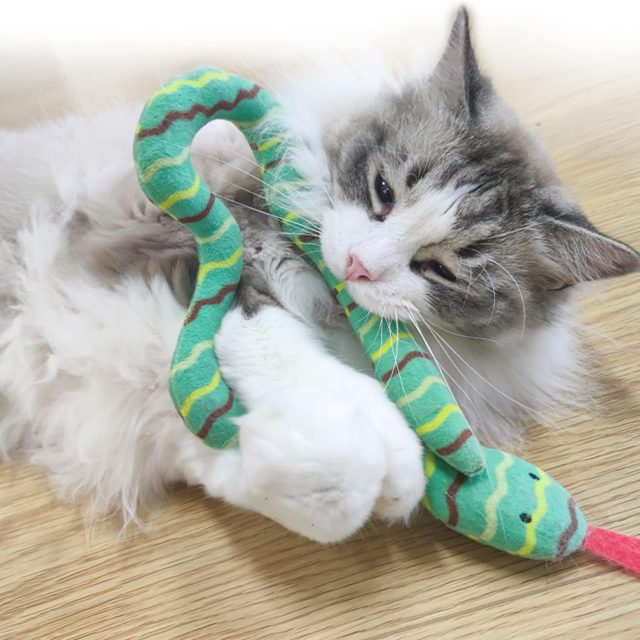 Unlike ordinary plush toys, this gluttonous snake design encourages full-body play. Cats can bite, hug, wrestle, and kick it with their back legs, just like real prey. The bite-resistant cloth helps protect your cat’s teeth while gently supporting natural chewing behavior. At approximately 20.5 inches long, it’s the ideal size for cats of all ages to grab and enjoy.
