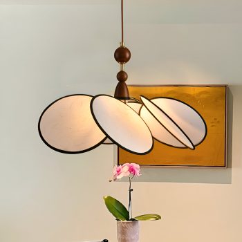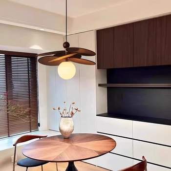 Retro Petal Fabric Chandelier Wood Pendant Light for Dining Room