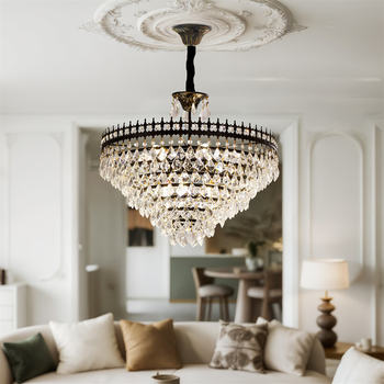 Elegant French Crystal Round Chandelier LED Pendant Lamp for Living Room