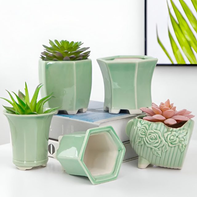 Upgrade your decor effortlessly with this Celadon Geometric Porcelain Flowerpot. Its eye-catching design and functional features make it a must-have for anyone who loves a stylish and organized space. Perfect for desktops, windowsills, or shelves, this planter brings beauty, creativity, and life into any environment. Start transforming your space today and let your plants thrive in style.