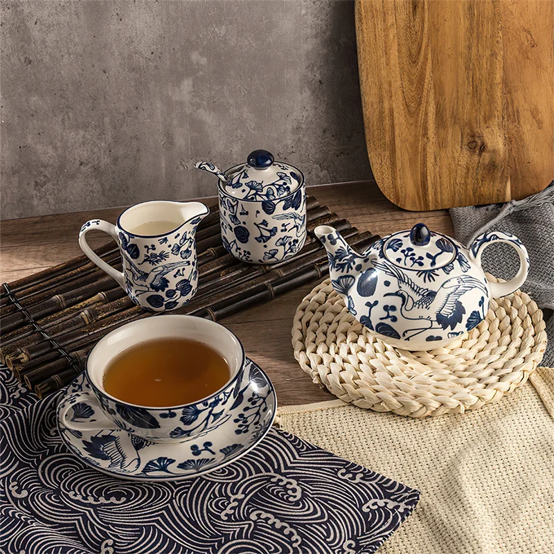 This exquisite teaware set is designed for those who appreciate the finer details in life. Its timeless blue and white pattern brings sophistication to any setting, from cozy breakfast nooks to stylish home bars. Use it for your morning coffee, afternoon tea, or even when entertaining a special guest – the set’s balanced proportions and elegant silhouette ensure a delightful experience every time.
