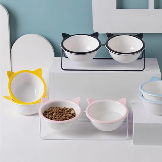 Elevated Ceramic Double Bowl for Cats and Dogs – Food & Water Station