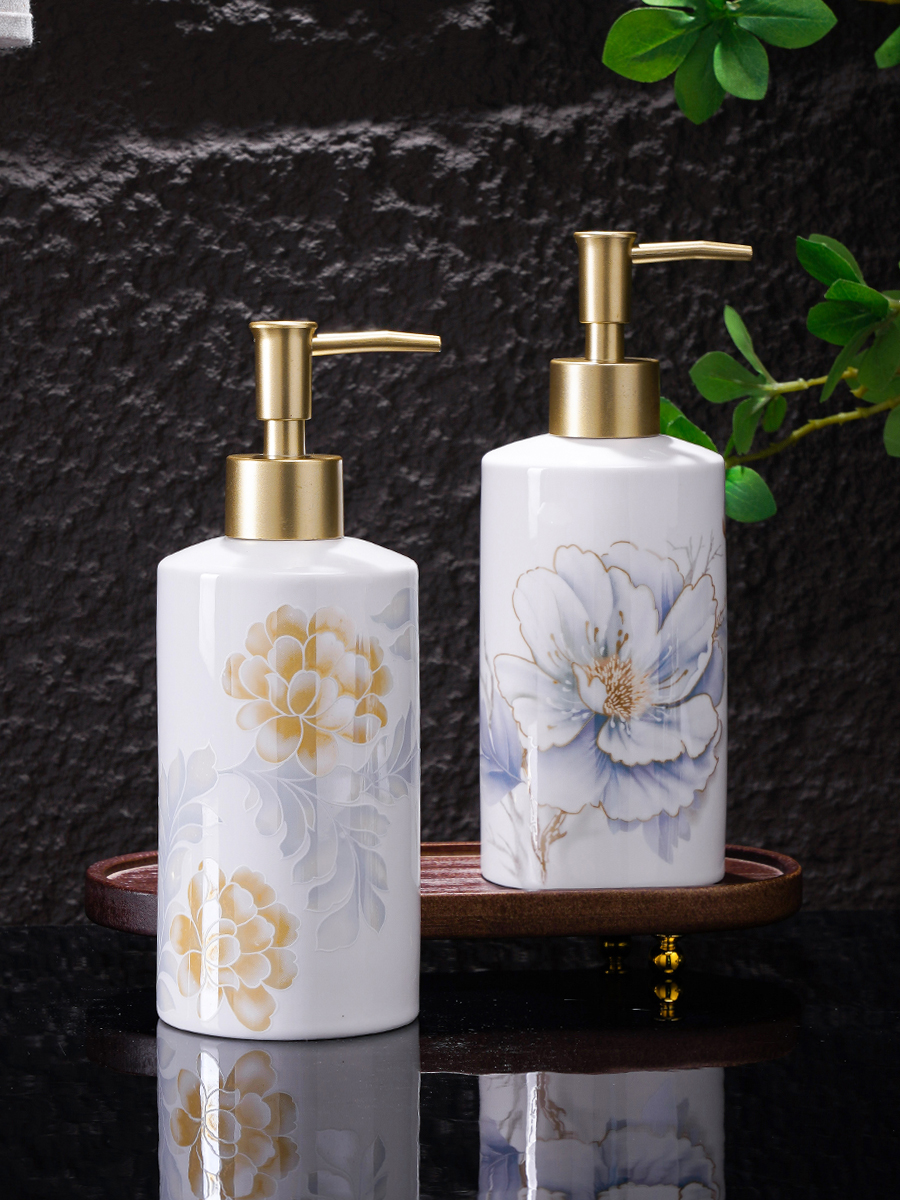 Transform your daily routine into a luxurious experience with this Ceramic Floral Soap Dispenser featuring a golden pump. Beautifully crafted from premium ceramic, it combines sophistication and functionality in one elegant design. The delicate floral pattern adds a touch of charm, while the shimmering gold pump enhances any bathroom décor with a warm, upscale look. Perfect for modern, classic, or vintage interiors, this dispenser turns an everyday essential into a decorative accent.