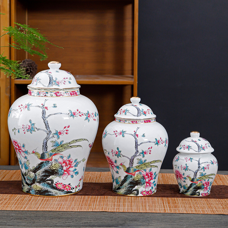Bring charm and sophistication to your living space with this Elegant Ceramic Tea Jar. Crafted in Guangdong, this exquisite piece features a delicate flower-and-bird motif that captures the serene beauty of nature. Its classic silhouette and glossy ceramic finish make it not only a practical storage solution but also a stunning centerpiece for any room.
