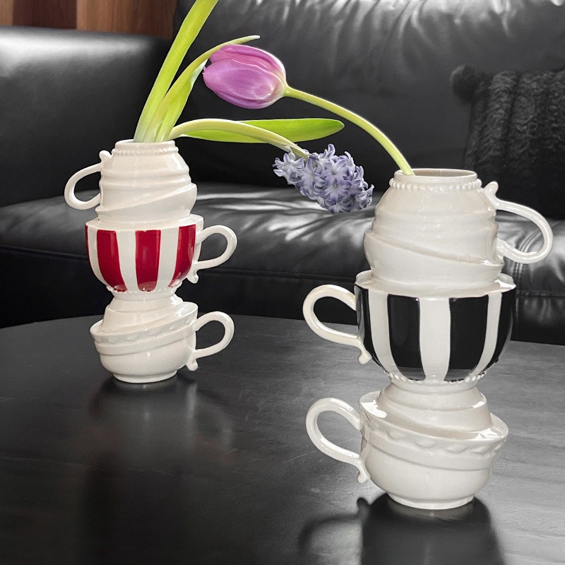 Elevate your living space with the Ceramic Geometric Folding Cups Flower Vase, a stunning addition to any modern home. Designed to capture attention, this vase seamlessly blends art and function. With its creative folding cups and geometric splicing design, it brings a touch of elegance and charm to any room. Whether placed on a tabletop, shelf, or as the centerpiece of a special arrangement, this vase is sure to make a statement in your home décor.