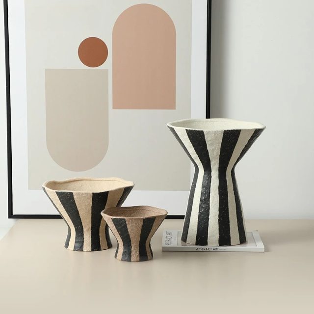 Elevate your home decor with this stunning Geometric Striped Ceramic Vase. This chic and versatile piece effortlessly combines style and function, making it the perfect addition to any room. Whether you’re looking for a unique flowerpot, a decorative storage solution, or a charming accent for your desk or tabletop, this vase does it all. The open, elegant design allows you to display fresh flowers or greenery, while also doubling as a practical storage container for small items, making it a must-have for any modern home.