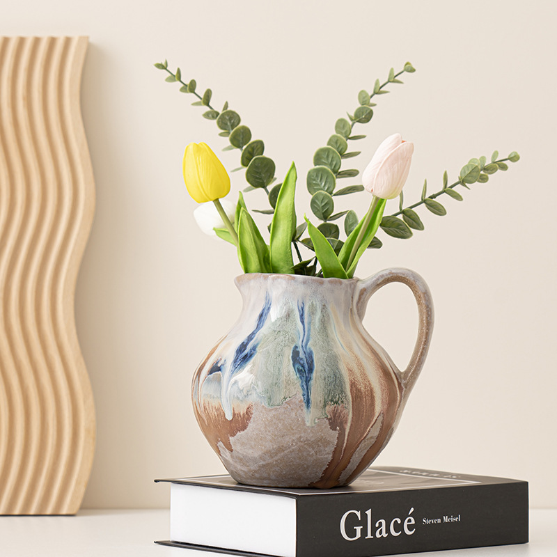 Unlike mass-produced glass vases, this ceramic retro pot stands out for its handcrafted texture and antique-inspired design. The kettle-like handle adds a playful yet elegant touch, offering both aesthetic appeal and functionality. It’s more than a vase—it’s a piece of art that tells a story of tradition and craftsmanship.