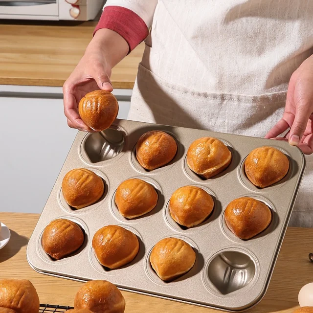 Chestnut Shaped Non-Stick Cake Baking Tray – 12 Grids for Chiffon Cakes, Cookies, and More