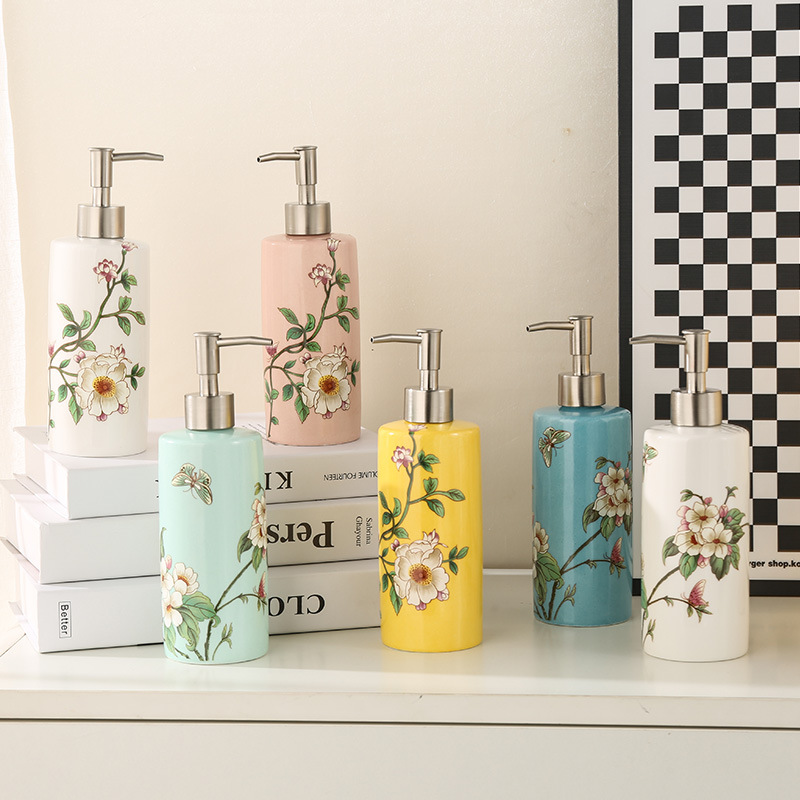 Luxury Chinese Floral Ceramic Lotion & Soap Dispenser