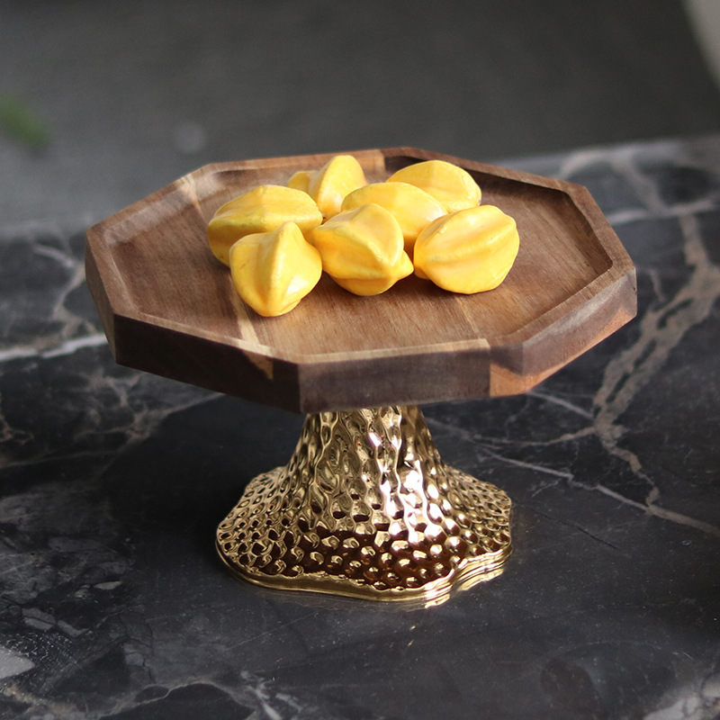 Luxury Solid Wood Hexagonal Fruit Bowl & Dessert Display Plate