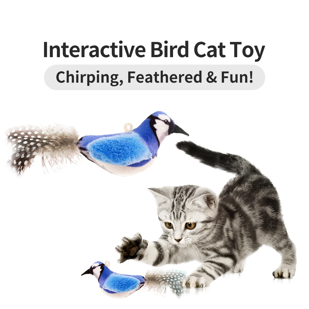 Interactive Chirping Bird Feather Cat Toy