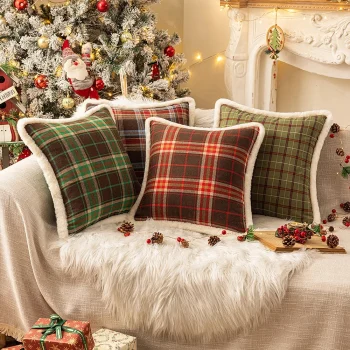 Christmas Plaid Throw Pillow Covers for Sofa & Bed Decor