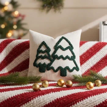Embroidered Christmas Tree Decorative Pillow Cover for Sofa & Bed
