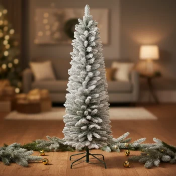 5ft Snow Flocked Pencil Christmas Tree for Small Spaces