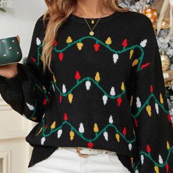 Women’s Christmas Lights Knit Sweater – Loose Holiday Pullover
