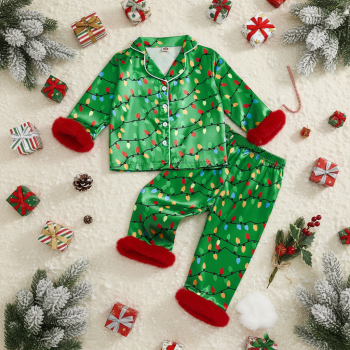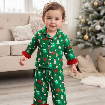 Kids Christmas Pajama Set with Fuzzy Santa Trim – 2 Piece Outfit
