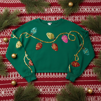 Women’s Y2K Sequin Christmas Lights Cropped Sweatshirt